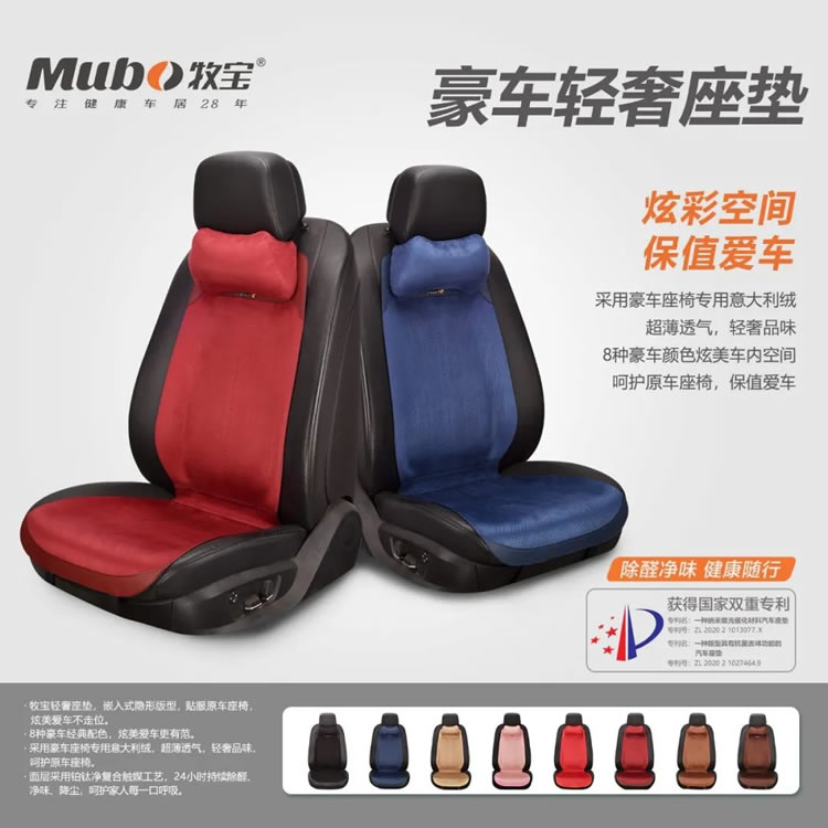 主打的牧寶凈味功能四季墊,采用運(yùn)動(dòng)品牌專用的飛織面料**用于座墊產(chǎn)品,舒爽透氣,四季皆宜;經(jīng)典9個(gè)顏色,適合各種內(nèi)飾搭配,有顏值有內(nèi)涵,座墊采用鉑鈦凈復(fù)合觸媒技術(shù),24H持續(xù)除醛、凈味、降塵。